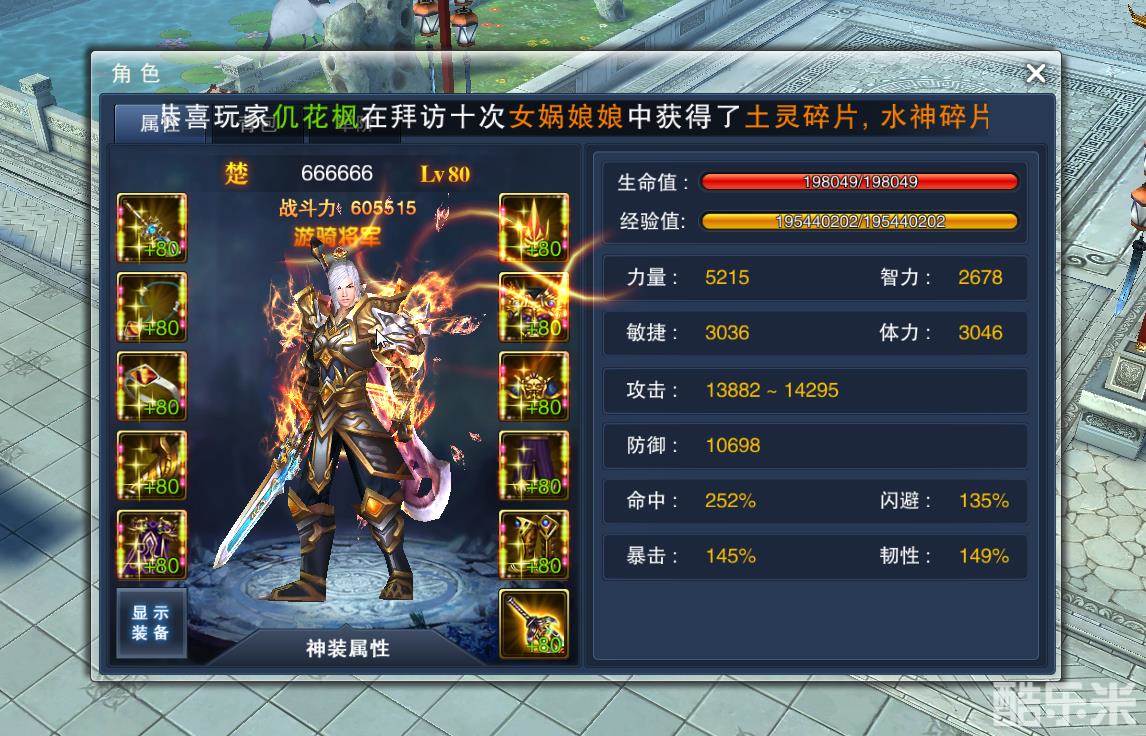 (3)神装套装属性: