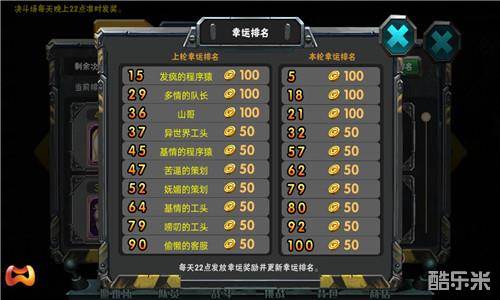 每晚更有幸运排名,自身排名与随机幸运排名相同的冒险家们还能获得额外的金币!