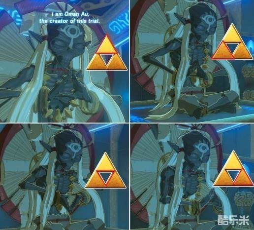 有一些细心的玩家发现,其实在《荒野之息》中还是可以找到传达给玩家的“三角力量”的,它们就隐藏在游戏得初期,很容易被玩家忽略到。在游戏开始,林克需要在Great Plateau地区探索四个神庙并获希卡石板的基本能力。当在玩家到达各个神庙深处找到古代僧侣的时候,三角力量就藏在他们的手中。