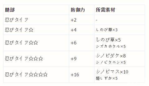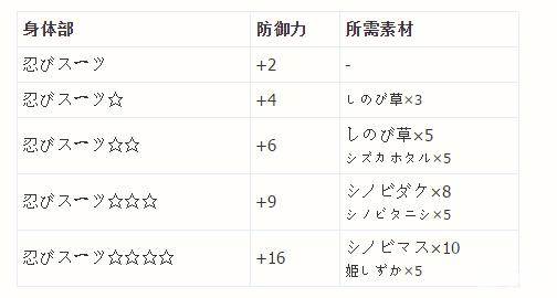 忍者套装在游戏开始不久的カカリコ村(忍者村)的防具店就能够买齐一套,省去到处收集的麻烦。