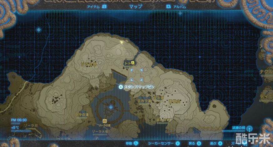 佐拉之兜:在ゾーラの里,正北方的那个瀑布,登上去(请先取得佐拉之凯)之后有个名为トト湖的地方,湖底的宝箱就是。(图中宝箱图标的位置)