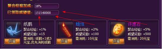 4. 经验加成与已领取威望值都在活动结束后清零,清零后可重新进行祈福并增加对应的经验与威望。