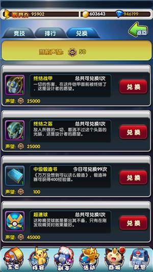 竞技场奖励最重要的东西是荣誉,荣誉值可以兑换极品装备和道具,还有稀有的终极锻造书,所以,不管是为了荣誉还是最强的训练师,勇敢的前进吧,骚年!