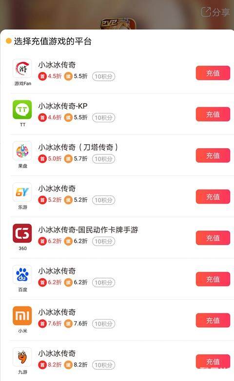 最后编辑于7年前|现在很多平台首充的折扣都很给力了,首充1折续充3折等比比平台皆是,但就是要用折扣平台的手游首充折扣软件充值才有这个折扣。手游折扣app有很多,但是也要游戏,对于比较火热的游戏,厂商控制得严,就没有充值折扣了。首充折扣是为了增加用户,让更多的用户使用自家平台的APP充值以提高流水,增强自身竞争力。