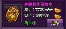 当然想轻松获得2700资质的伙伴就需要神级伙伴召唤令了,每次刷新10元宝,外观还特别漂亮哟。