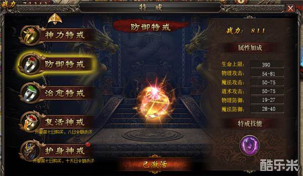 特戒被激活后,可以永久增加人物属性,提升人物战斗力。
