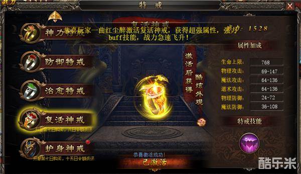 复活、护身(阴阳、麻痹)神戒需要消耗元宝激活。开服前7天购买的话,第八天可全额返还哦!