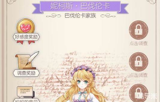 妮柯斯是巴伐伦卡家的幼女,琉巴伐伦卡的妹妹。深得父亲宠爱,因此对政治没有什么概念。刚进入社交界的她,肩负着钓回一个金龟婿的重任,然而这位只喜欢读书写诗,和人交流就特别害羞的少女似乎完全不得要领。