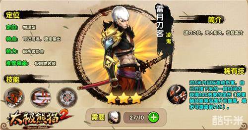 雷月刀客稀有技【奥义·天刀诀】可以为主将提升免伤效果,最高为72%,效果与太极武僧类似。当玩家的戒指和项链精9之后,会激活72%的伤害减免,这就是为什么他们会变得那么耐揍。雷月刀客稀有技的免伤属性,对于还没有达到精9的玩家也是个不错的选择哦!