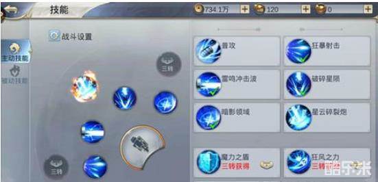 1.主动技能可上阵5个,角色三转后可增至7个。