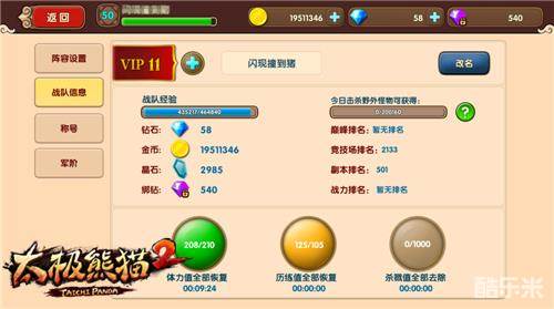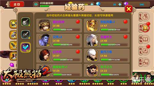 《太极熊猫2》中英雄众多,在战斗表现上采用小队作战的模式,玩家可以自由调整主将英雄以及副将组合。因此,等级这一概念在《太极熊猫2》也被划分成了战队等级和英雄等级。玩家通过副本战斗、任务、击杀怪物获得的经验都属于战队经验,而通过副本掉落、活动赠送的经验药,则对应的是英雄经验。单个英雄的等级无法超越战队等级,所以想要提升英雄等级,还是得先从战队等级上入手。