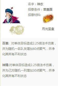 开天辟地2中神农的技能优势在于所有技能都带有净化效果,对于后期boss战斗持续的时间越来越长,净化不利状态的技能是必不可少的!往往后期中个debuff,那掉血和限制可都是大大滴,神农的作用就在此发挥出来了。