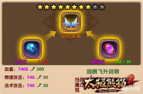 通过以上的介绍,相信玩家们对于《太极熊猫2》的翅膀飞升系统已经有了初步的了解。翅膀飞升不仅能提升人物属性,外形也会变得更加炫酷!