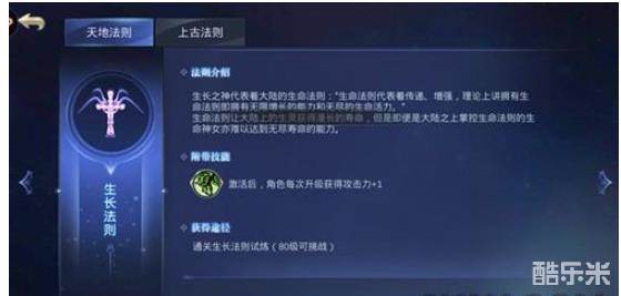 生长法则给角色的属性加成是每次升级攻击力+1,说实话,在游戏初期这种属性加成的优势并不明显,与第一个获得的雷霆法则相比,生长法则没有一点吸引人的地方。不过到了游戏后期,角色攻击力增长缓慢,这种属性加成就能给玩家与玩家之间拉开一些差距了。