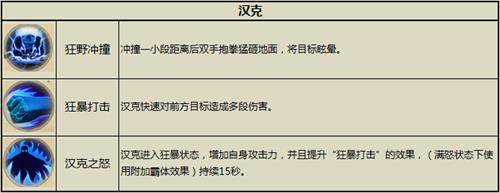 汉克是雇佣兵团的最具代表性的一员,脾气暴躁容貌丑陋,实力却不容小觑。“狂野冲撞”可以冲撞一小段距离后双手抱拳猛砸地面,并将目标眩晕;“狂暴打击”可以快速对前方目标造成多段伤害;而“汉克之怒”可以让汉克进入狂暴状态,增加自身攻击力,并且提升“狂暴打击”的效果!恐怖的爆发力让汉克在野外团战和副本中,起到关键性的作用!