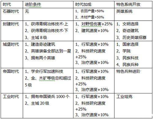 下面我们来介绍一下游戏中各时代的进阶条件和进阶后加成:
