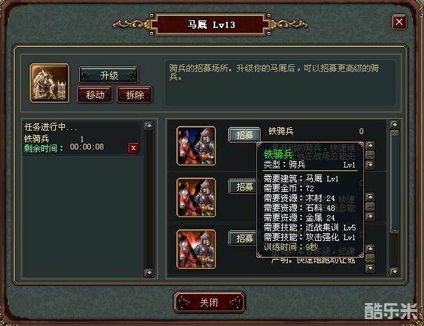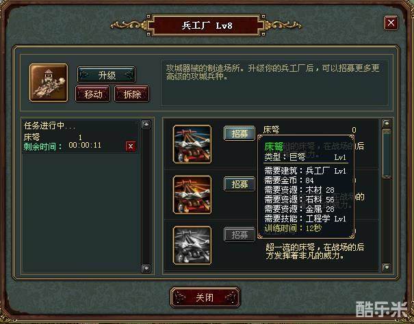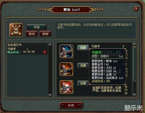 A:建造兵营、马厩、靶场、兵工厂后即可招募不同的兵种。当人口不足或者粮食产量为负值时,不可以进行士兵招募。某些兵种会占用多个人口。兵种招募时是单个建造的,每完成一个,城市的部队列表中就多一个。招兵时会降低民心,最高会降低5点。