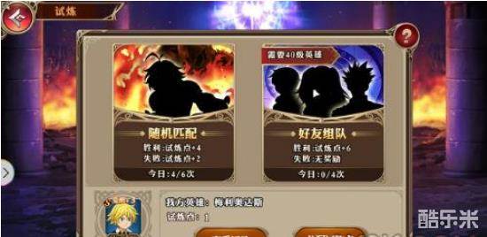当玩家们等级到达20多级的时候就可以开启试炼玩法了,20级以上的英雄可以参加随机匹配,40级以上的英雄可以参加好友组队。