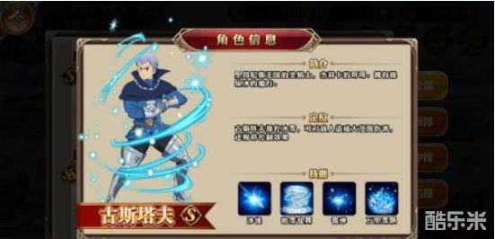 古斯塔夫是一个S级品质的英雄,在技能方面上,