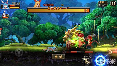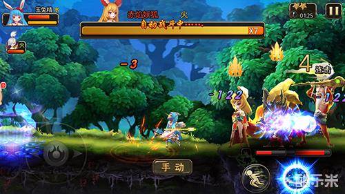 其实这关并不是很难打,手动操作月兔到敌人的一边,如果敌人冲上来,就利用速度优势闪开,抵达优势位置再输出就好了。