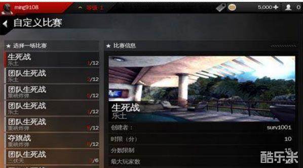 下面可以选择创建自定义比赛,或者搜索自定义比赛。选择创建自定义比赛的话,会让你选择时限、分数限制等选项。都确认完成后就可以等待其他人加入房间了。