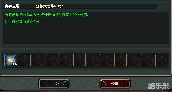发布拍卖物品时可以选择8h/24h/48h三种上架时间。物品上架时会扣除保管费(游戏内金币),物品上架成功后物品将交由系统保管。当物品持续到上架时间结束还未被售出,物品将通过邮件返还给玩家。当该物品售出后,系统将把扣除手续费(点券)之后剩余的点券以邮件形式发送给卖家。