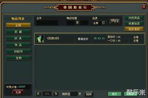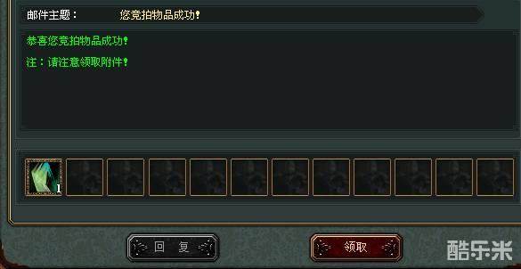 若您竞价后没有其他玩家参与竞价,则您竞拍成功,拍得物品后也将不再扣除点券,物品通过邮件发送至买家邮箱。