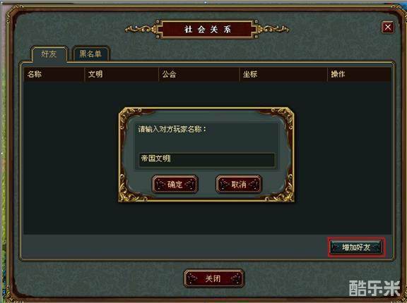 玩家首次登录时,好友名单是空的,要和其它人联系,必须先要添加好友。成功添加好友后,你就可以和该玩家交流了。