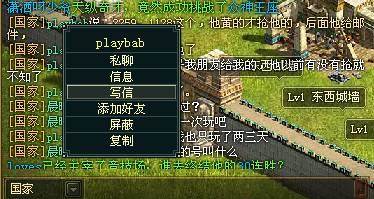 聊天频道中,用鼠标右键点击对方角色可以弹出选择菜单,在菜单里选择“写信”,即可和对方进行邮件往来。