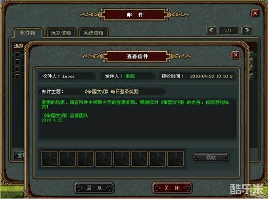 邮件功能是用来收取玩家和游戏系统信件消息的系统工具