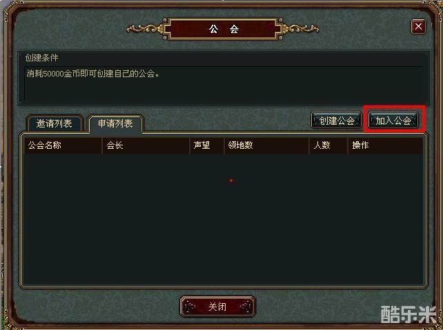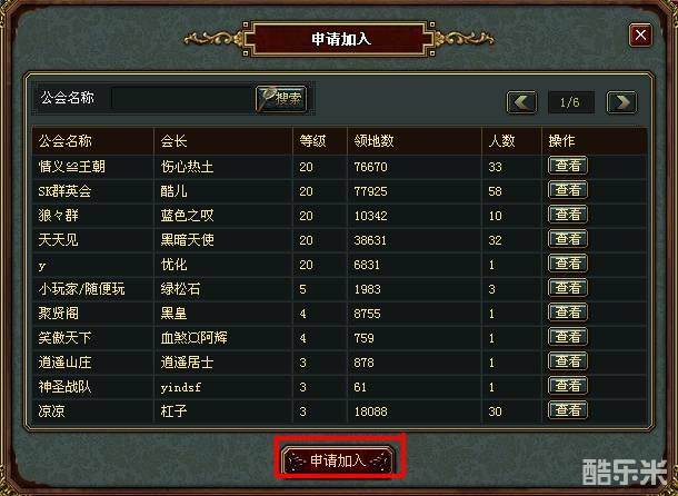 2.点击加入公会后会跳出一个申请界面(选择自己满意的公会,然后点申请加入)