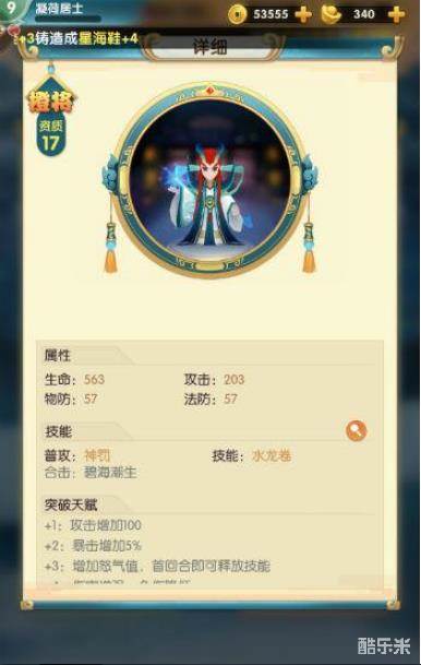 东海龙太子是一个17资质的橙色伙伴,普通攻击能够对前排单个敌人造成伤害。技能方面,能够对前排一排敌人造成伤害,同时降低目标防御。这个效果还是很不错的,要知道敌人阵容中的前排一般都是防御型伙伴,如果能够削弱前排防御,那么就能够对敌人前排造成的伤害更高,做到尽可能快的击杀对面前排,只要对面前排倒下,那么后排的脆皮输出也就不在话下了。合击技能方面,和白龙马一起上阵即可触发,对三角范围造成伤害,附带本次攻击暴击提高的效果,对于输出还是很有帮助的。