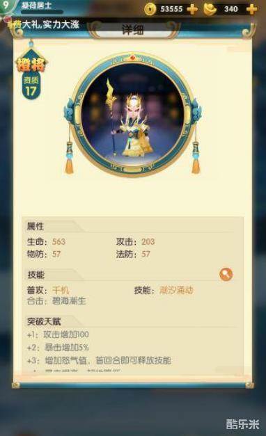 白龙马是一个17资质的橙色伙伴,普攻攻击对单个敌人造成伤害。技能方面,潮汐涌动能够对三角范围敌人造成一定伤害,范围还是不错的,附带此次攻击暴击提高的效果,能够大幅加强白龙马自身的输出能力,在副本推图中非常好用。合击技能方面,和白龙马自身的技能效果差不多,只是暴击效果得到了提升,在输出方面的表现还是很不错的。