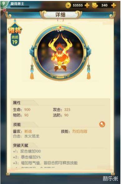 火神祝融是一个19资质的橙色伙伴,普通攻击对前排单体造成法术伤害。技能方面,能够对全体敌人造成伤害,并且附带可叠加的提高自身攻击和暴击的效果,能够让火神祝融的伤害输出越来越强,非常适合那种持续战斗的情况,在副本推图或者是面对BOSS的时候比较好用。合击技能上能够进一步的提升攻击与暴击的叠加效果,还是很厉害的。