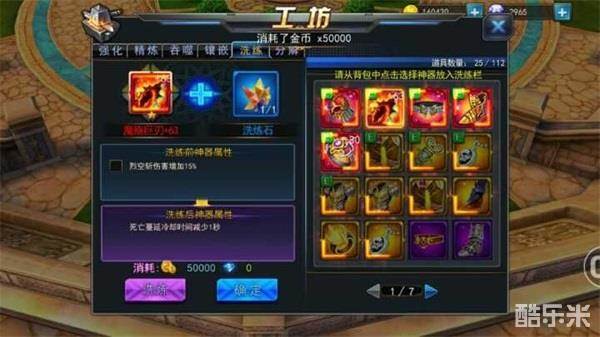 红色品质的装备可以通过洗练系统更换装备所携带的神器属性,你可以根据自己职业的属性选择洗练更换,武器可以洗练为技能伤害增加的百分比以及技能冷却时间缩短。装备的话可以洗练自己需求的属性,可以是力量百分比,或是防御百分比,智力百分比……