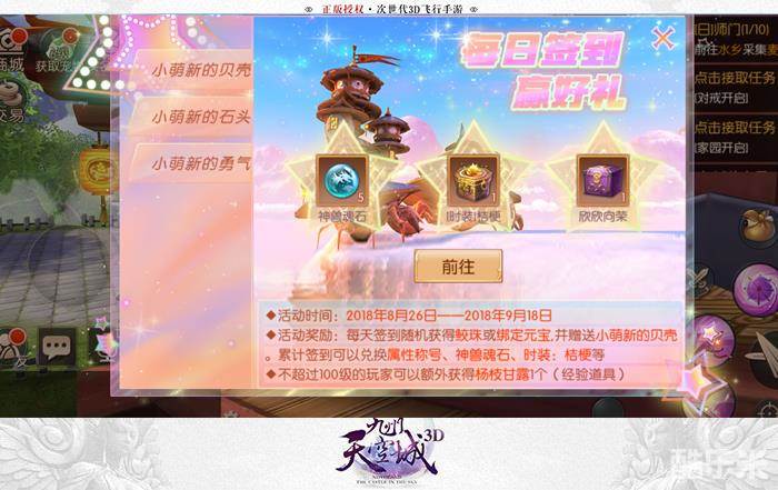 就在今日,九州迎来全新福利萌新周。更多活动带来更多福利,让《九州天空城3D》带你走上老司机的道路!极其简单的活动就能带来超多稀有道具,以前你不敢想的神兽,现在你也可以免费获得。更有家族特殊的职位名称,让你的头衔可以在九州中独一无二。想体验这些福利吗?那就快来《九州天空城3D》,让你成为九州大佬!