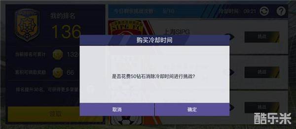 如果不小心输了,需要等待十分钟,才可继续挑战哦~不想等待的话,花费50钻石就可立即挑战!最后,获得的荣誉不要忘了去天梯商店中兑换哦!这里不仅可以买到训练卡,更有打折超值商品,最重要是不用花钱~有木有!