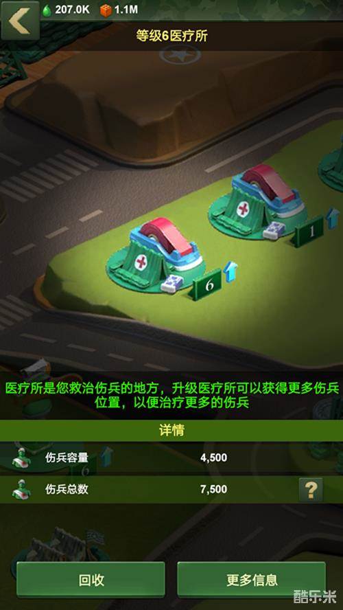 在《兵人大战》手游中,医疗所是玩家救治伤兵的地方,可以快速恢复兵力,是减少伤亡必备的建筑,而升级医疗所则可以获得更多的伤兵位置,以便治疗更多的伤兵。