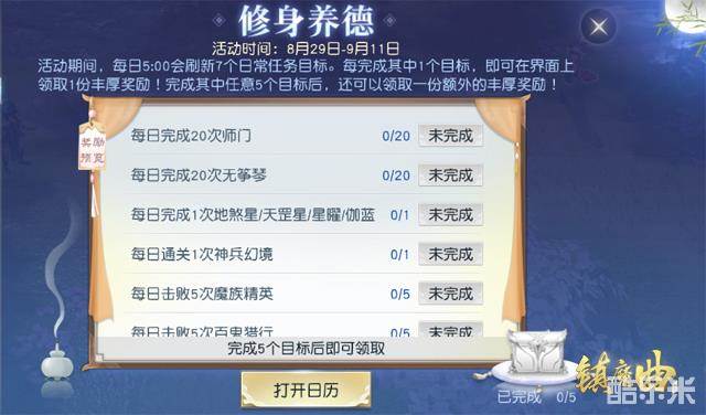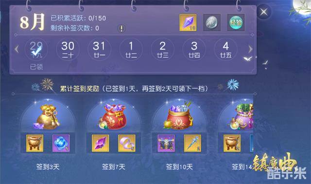 兰若书院系列活动中,天命者们每天都可以参与签到、获取“谦恭持礼”活动的丰厚奖励!累计签到天数,还有额外奖励送上!“修身养德”活动里,天命者们每天都能收到7个不同的日常任务目标,每个目标都有不同奖励送上,完成5个还有大奖入手!