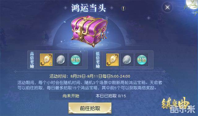 每天早上5点到凌晨24点,“鸿运当头”活动都将持续进行。每小时都会在随机时间、随机3个场景中刷新两轮鸿运宝箱!天命者们可以前往拾取,收获宝箱中的各类好礼——每天限量15个,前5个宝箱将有额外高倍奖励,不要错过!