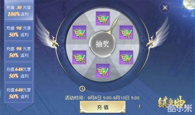 活动期间,“次次精彩”、“步步夺金”、“豪情回馈”、“特惠直购”、“摩天轮盘”及“回味无限”六重福利将同步开启,充值指定档位、累计金额、购买指定道具等,即可获赠各类珍稀道具及高额绑定元宝等奖励!
