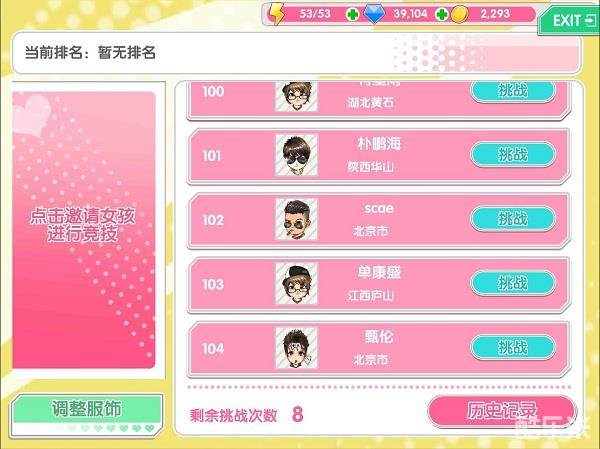 当然,人在江湖飘,哪能不挨刀~排名高了,肯定会有别人挑战你的,你防守时的女孩和装扮,就是你最后一次挑战别人的女孩以及装扮。所以最后一次挑战时,尽量不要尝试新阵容。