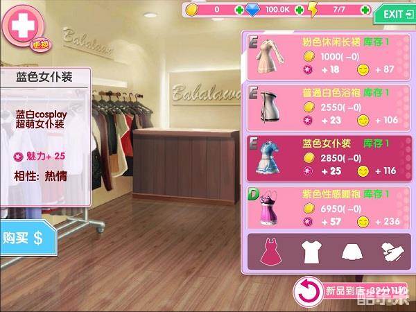 每次商店的库存貌似都是1,如果遇到好看或者合适的衣服就应该果断出手,因为商店会刷新的,万一下次刷新没出来,那就错过咯。