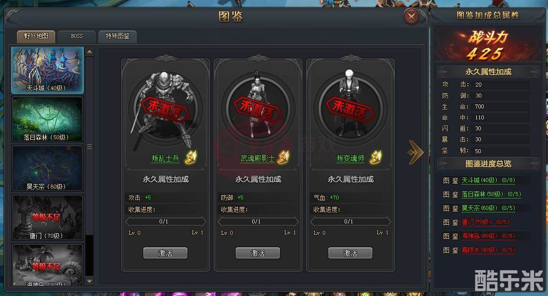 玩家收集到对应的图鉴后,就可以激活图鉴,获得图鉴所提供的属性加成。后期,玩家还能继续收集各种图鉴,来对已激活的图鉴进行升级,从而提高图鉴的属性效果。