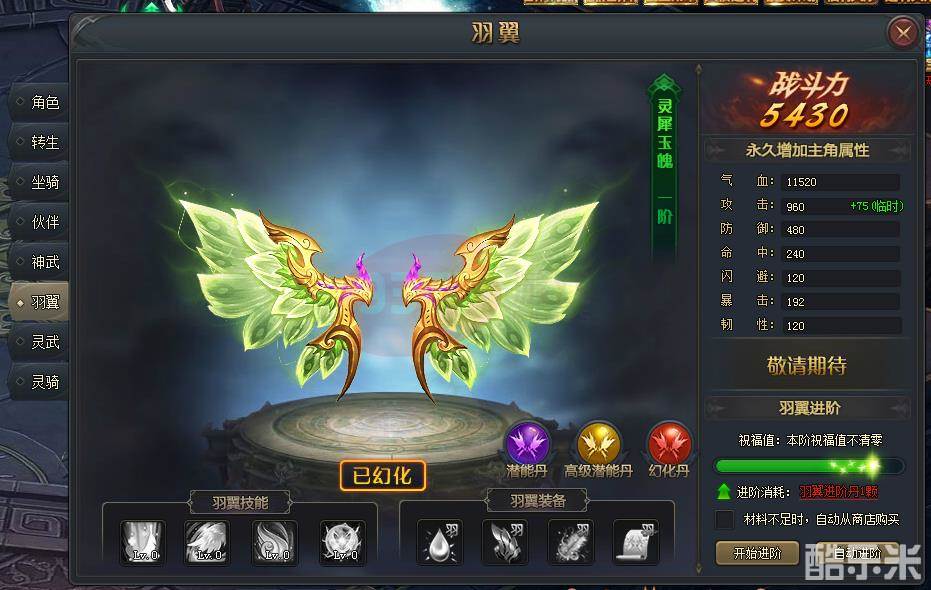 玩家进阶羽翼之后,可学习到更多的羽翼技能,而且还能使用更多的潜能丹、幻化丹道具,来提升羽翼的属性效果。玩家可以为羽翼佩戴对应的羽翼装备,增强羽翼的属性效果,各种羽翼装备可通过定时boss、剧情副本、进阶副本等途径来获得。