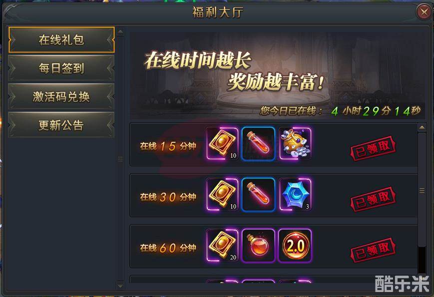 在斗罗大陆游戏里,玩家满足一定等级要求后,可以领取到在线礼包的福利。大家通过界面上方的“福利大厅”图标,可进入去在线礼包界面。玩家可在该界面里,了解到在线礼包的信息内容及领取对应的奖励品。