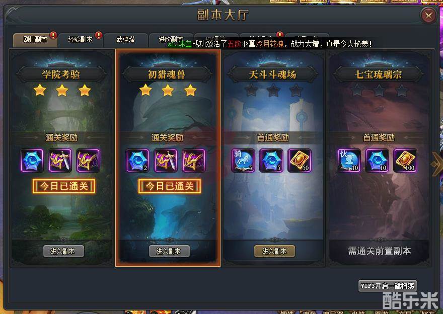 在斗罗大陆2D网页游戏里,剧情副本是玩家日常可挑战的一类型副本,这种副本为大家准备了丰厚的奖励,大家只要花费点时间,将这些副本通关了,就能获得相应的副本奖励。那么斗罗大陆2D剧情副本有哪些呢?斗罗大陆2D剧情副本有什么奖励呢?
