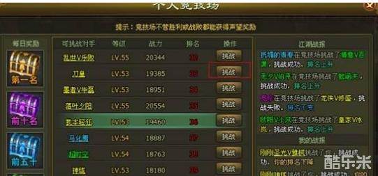 玩家挑战目标成功后取代目标的排行,被击败的玩家替换挑战玩家的排名。相互进行对换