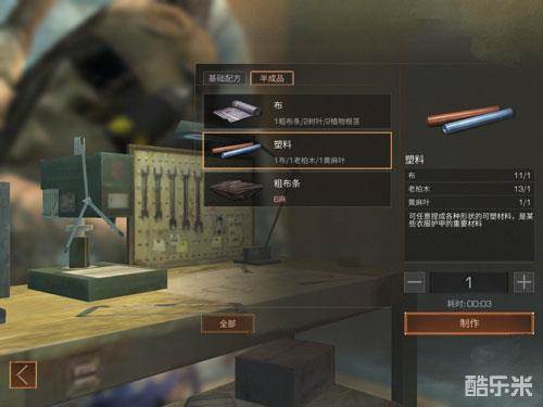 塑料可以再家用制作台上制作而成,需要消耗布*1、老柏树*1、黄麻叶*1,这些材料可以在白树高地获得!