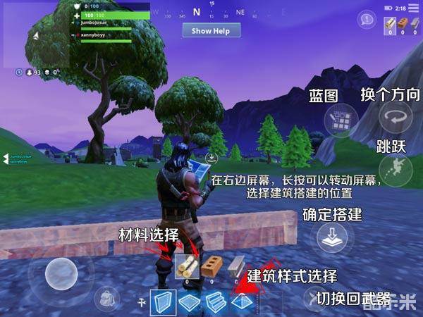 基本的操作大家参考上图的标识应该都能清楚,详细的技巧就需要大家多加练习了,以上就是本次小编为大家带来的堡垒之夜手游的基本操作教程,玩法没做多大的改变,还是能轻松上手的。